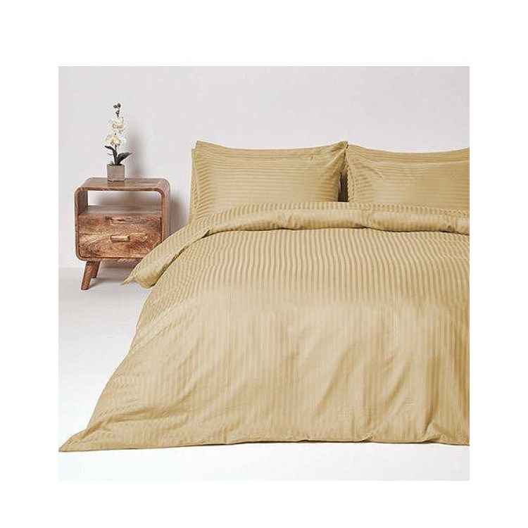 Aglika спален комплект 5 части, сатен, райе, бежово, 220 х 240 см (1 бр.)