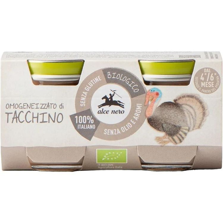 Alce Nero био пюре пуешко месо, 4 - 6 месеца, 2 бр. х 80 г (160 г)