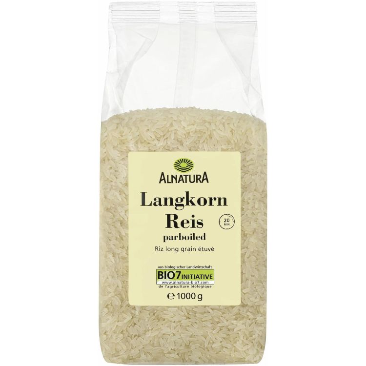 Описание: Био дългозърнест ориз, отглеждан в северна Индия и обработен по технология на предварителна обработка с пара. При този метод оризът се обработва с пара и налягане преди лющене, което позволява хранителните вещества от обвивката да проникнат в зърното и да се запазят в голяма степен. В резултат на това се съкращава времето за готвене до 20 минути. Предварително обработеният ориз е идеален за гарнитури, ястия на фурна, салати и супи. Alnatura дългозърнест предварително обработен ориз произхожда от биологично земеделие и се предлага в практична опаковка от 1 кг.