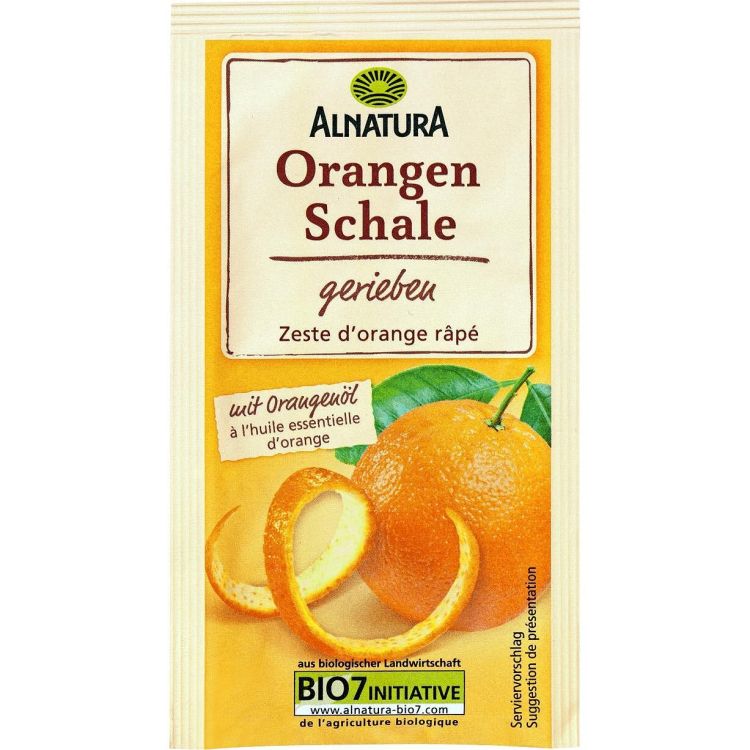 За продукта: За фин плодов портокалов аромат в печива, десерти и напитки. Alnatura настърганите портокалови корички се получават от пресни био портокали, лиофилизирани внимателно и обогатени с естествено портокалово масло. Лесни за използване – просто добавете и разбъркайте. Съдържанието на пакетчето отговаря на кората на един портокал. Портокалите са от биологично земеделие.