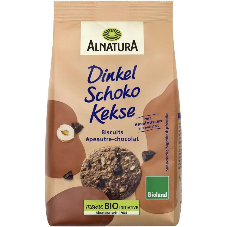 Хрупкави био бисквити, изпечени от пълнозърнесто спелтово брашно и обогатени с парченца тъмен шоколад и лешници. Приятно ароматни, благодарение на истинска ванилия, канела и кориандър. Подходящи за кафе, пикник или малка закуска между храненията. Произведени с Bioland сертифицирани съставки. Веган продукт.