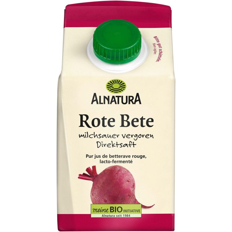 Alnatura био сокът от червено цвекло се получава чрез естествен процес на ферментация, при който млечнокиселите бактерии превръщат част от естествените захари в млечна киселина. Това придава на напитката характерния свеж и балансиран вкус. Продуктът е натурален, без добавки и консерванти.