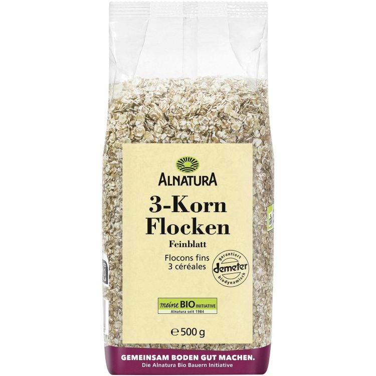 Био микс от фини пълнозърнести люспи с Demeter качество, приготвен от овес, спелта и ръж. Ароматна и питателна комбинация, подходяща за закуска в мюсли, за домашен хляб или за поръсване върху салати и печива. С покупката на този продукт подкрепяте инициативата Alnatura Bio-Bauern за повече биоземеделие в Германия.