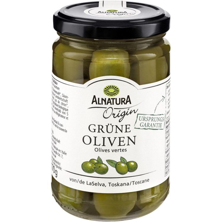 Нежно ароматни зелени маслини с костилка и плътна структура, произведени по биологични стандарти в Южна Италия. След ръчна беритба маслините се мариноват в морска саламура и се овкусяват с малко лимонов сок за свеж вкус. Подходящи са за антипасти, салати, паста или като добавка към пица. Продукт с гаранция за произход от LaSelva, Южна Италия.