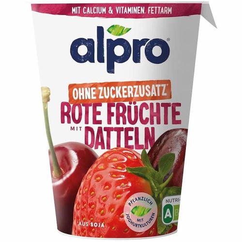 Alpro заквасен соев продут с червени плодове и фурми, без захар (400 г)