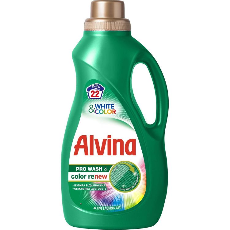 Alvina White & Color течен перилен препарат за бели и цветни тъкани, 22 пранета (1.1 л)