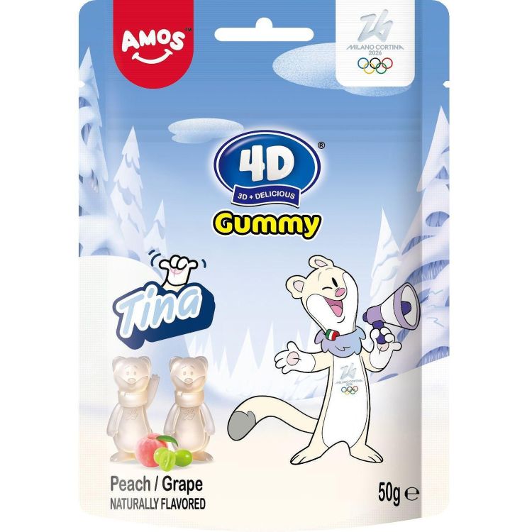 Amos 4D Gummy Tina праскова и грозде, 50 г