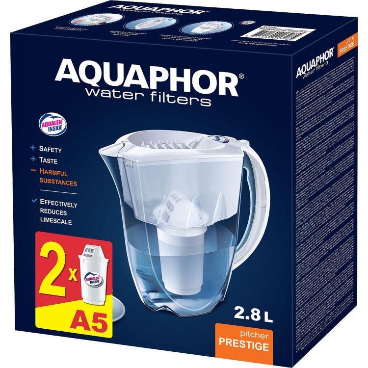 Aquaphor Prestige филтрираща кана A5, бяла с два филтъра (1 бр.)