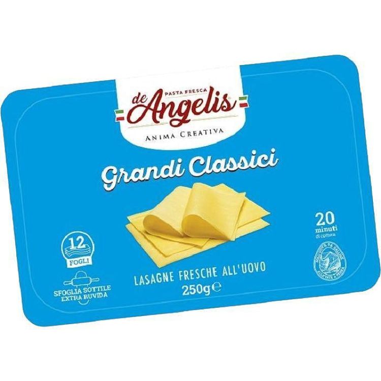 Пресни италиански кори за лазаня, произведени по традиционна рецепта от висококачествен грис от твърда пшеница и яйца от подово отглеждани кокошки. Идеални за приготвяне на класическа лазаня и други запечени ястия с паста. Корите са с отлична текстура, не се разпадат при печене и осигуряват перфектен резултат без предварително варене.