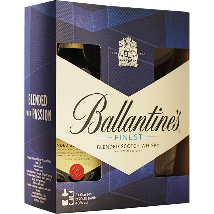 Ballantine's Finest шотландско уиски с 2 чаши (700 мл)