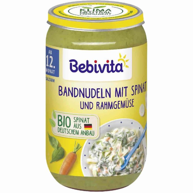 Bebivita пюре макарони със спанак, зеленчуци и сметана, 12+ месеца (250 г)