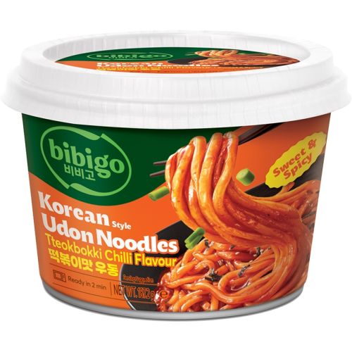 Bibigo Korean Style Udon Noodles Tteokbokki Chilli Flavour удон нудли с пикантен тteokbokki сос, 187 г