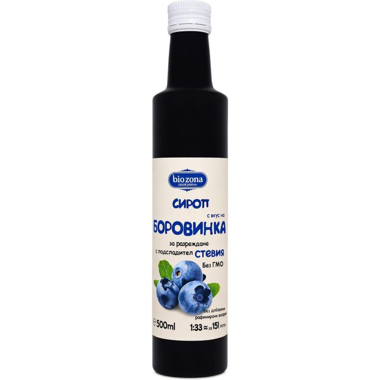 bio zona сироп за разреждане боровинка, без захар, със стевия (500 мл)