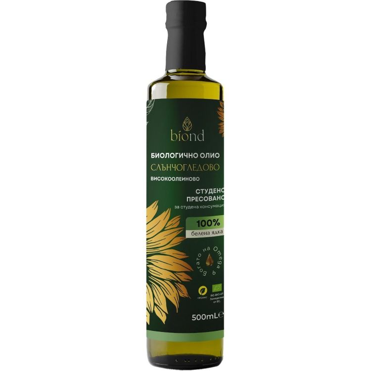 biond био студено пресовано високоолеиново слънчогледово олио (500 мл)