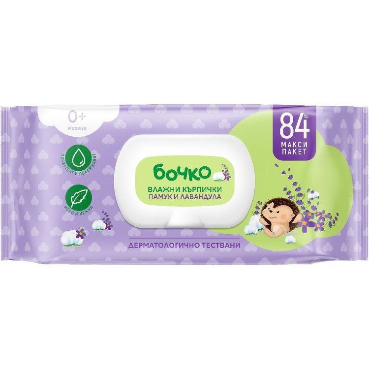 Бочко бебешки влажни кърпички лавандула и памук (84 бр.)