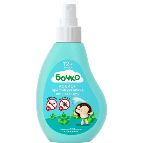 Всеки родител има лична мисия през топлите месеци - да предпази детето си от кърлежи и комари. На помощ в тази нелека задача се притича таралежчето на "Бочко" с лосиона против ухапване от насекоми. Той е със специална активна формула, която ще предпазва вашето мъниче до 8 часа.