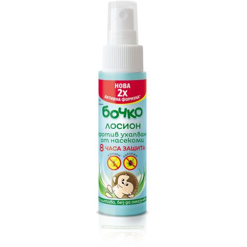 Всеки родител има лична мисия през топлите месеци - да предпази детето си от кърлежи и комари. На помощ в тази нелека задача се притича таралежчето на "Бочко" с лосиона против ухапване от насекоми. Той е със специална активна формула, която ще предпазва вашето мъниче до 8 часа.