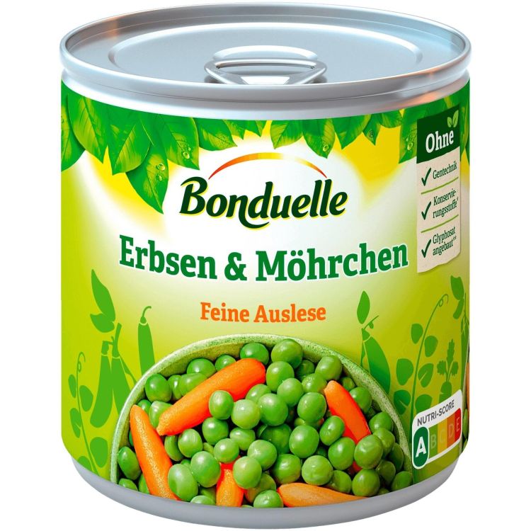 Съставки: зеленчуци в различно съотношение (млад грах и моркови), вода, захар, сол.