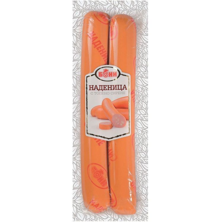 Съставки: свинско месо, сланина, свински кожички, топено СИРЕНЕ 15% (КАШКАВАЛ, СИРЕНЕ, ИЗВАРА, КРАВЕ МАСЛО, емулгаторни соли), нитритна сол (трапезна сол, консервант: натриев нитрит), картофено нишесте, говежди протеин 1.5%, ЛАКТОЗА, декстроза, стабилизатори: дифосфати, карагенан, набухватели: гума гуар, ксантан, усилвател на вкуса: мононатриев глутамат, динатриев гуанилат, динатриев инозинат, подправки и екстракти от подправки, антиоксидант: аскорбинова киселина, ароматизанти. Опушен по традиционен начин с естествен пушек. Обвивката на колбаса не е ядивна! След отваряне съхранявайте в хладилник и използвайте до 2 дни, но не по-късно от датата, обозначаваща срока на трайност.