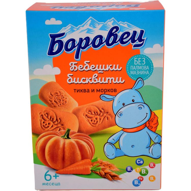 Боровец бебешки бисквити тиква и морков, 6+ месеца (100 г)