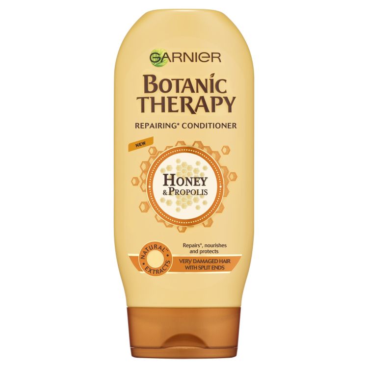 Балсамът с мед и прополис на марката Garnier се бори с цъфтящите краища на косата. Обогатен с мед, който действа, като елексир на косата, а прополисът укрепва космените фоликули, стимулира растежа и придава блясък.