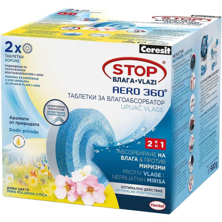 Cerasit Aero 360 таблетки за влагоабсорбатор, диви цветя и масла, 2 бр. х 450 г (1 бр.)