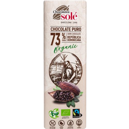 Chocolates Solé био черен шоколад 73% какао, 25 г