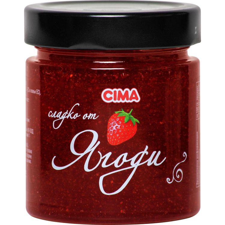Сладкото от ягоди Cima е приготвено с високо съдържание на плод и натурален вкус, без добавени консерванти, оцветители и ароматизанти. Подходящо е за директна консумация, както и за десерти, палачинки и печива.