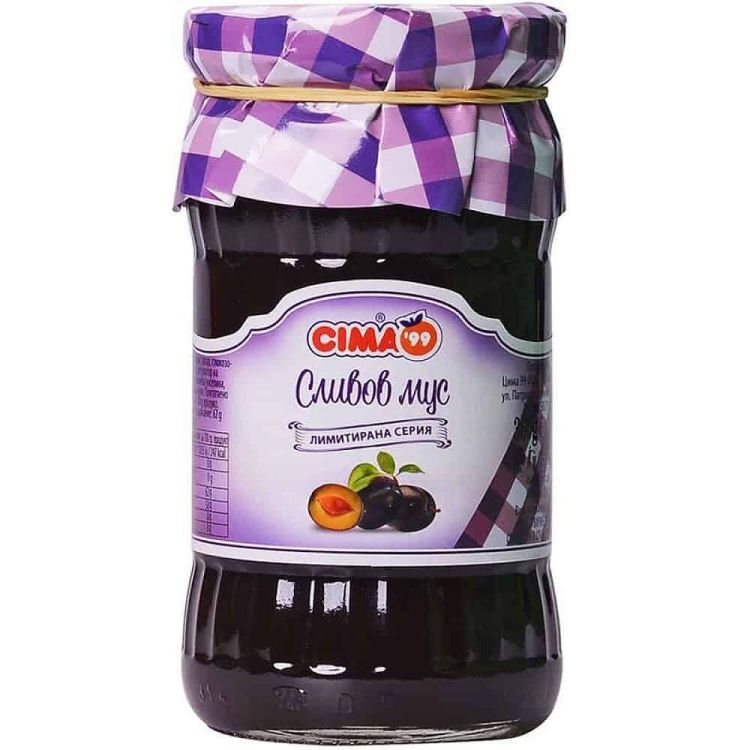 Сливовият мус Cima е продукт, подобен на конфитюр, получен чрез използване на концентрирано пюре от сини сливи. По своята консистенция и вкус наподобява традиционния домашен мармалад от сини сливи, с плътен плодов характер и балансирана сладост.