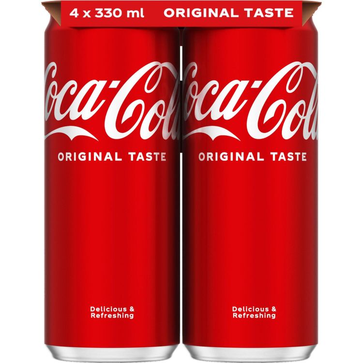 Coca-Cola Original Taste газирана безалкохолна напитка, кен, 4 бр. х 330 мл (1.32 л)