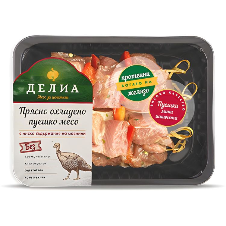Делиа пресни пуешки шишчета с билки и чушка (400 г)