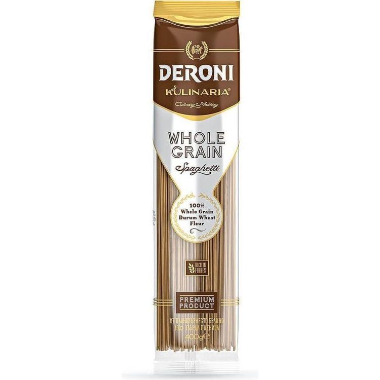 Допълнителна информация: Пълнозърнести спагети Deroni Kulinaria са продукт с високо съдържание на фибри. Произведени от пълнозърнесто брашно от твърда пшеница, те предлагат богат вкус и хранителна стойност, подходящи за цялото семейство.