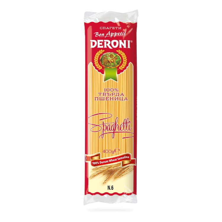 Допълнителна информация: Deroni спагети са създадени от висококачествена твърда пшеница. Подходящи за разнообразни ястия с класически вкус и отлична текстура след сваряване.