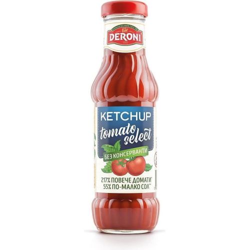 Съставки: доматено пюре (320.3 г домати на 100 г готов продукт), захар, ябълков оцет, сол, пресен чесън, лук, свеж босилек.
