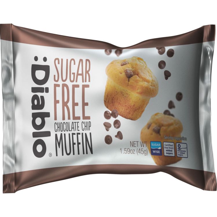 Мек мъфин с парченца шоколад без добавена захар, подсладен с малтитол и ацесулфам К. Съчетава приятна текстура и шоколадов вкус, подходящ за хора, които ограничават приема на захар. Съдържа естествени захари и полиоли. Прекомерната консумация може да има слабителен ефект.