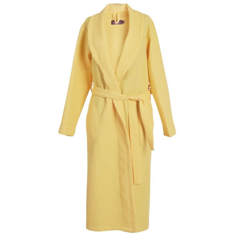 PNG халат за баня вафел с шал яка, жълт, размер S (1 бр.)