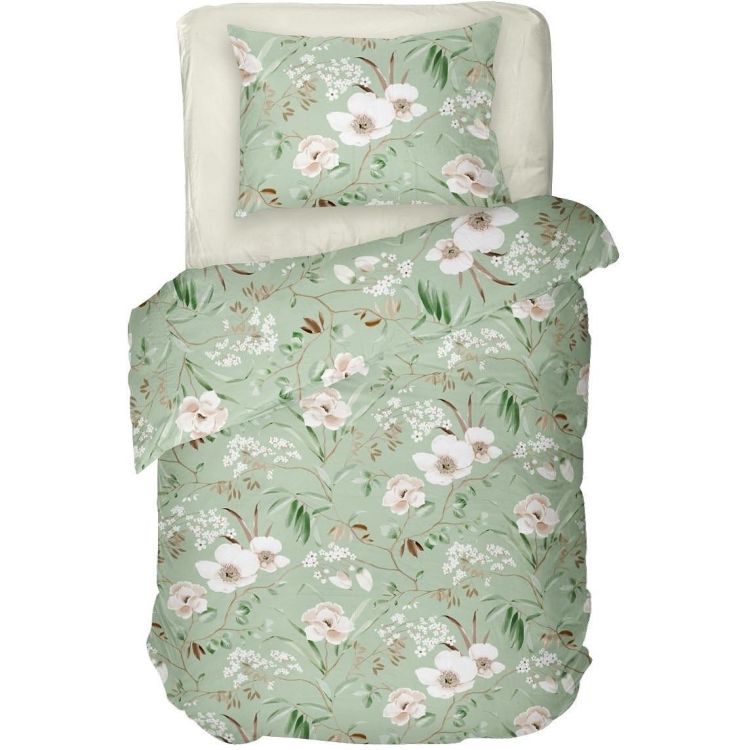 Нежно предложение за Вашата спалня - спално бельо магнолия в зелено е чудесен избор за Вашата спалня както и за подарък за жена. Съчетава се успешно с всеки интериор и особено подходящ за любители на флоралните мотиви. Спалният плик се закопчава с копчета разположени при отвора в долната му част. Калъфката е със странична прехлупка. Долният чаршаф е в цвят - светло екрю.
