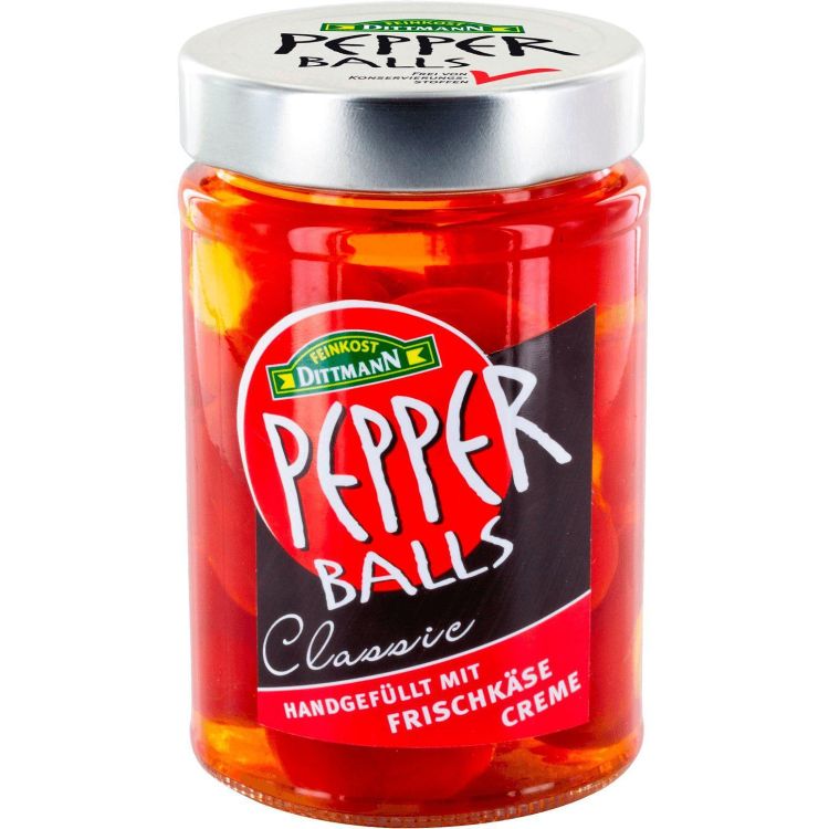 Feinkost Dittmann предлага пикантно-сладки пиперки, пълнени с крема сирене. Тези деликатеси са идеални като предястие, добавка към салати или като част от антипасти плато.