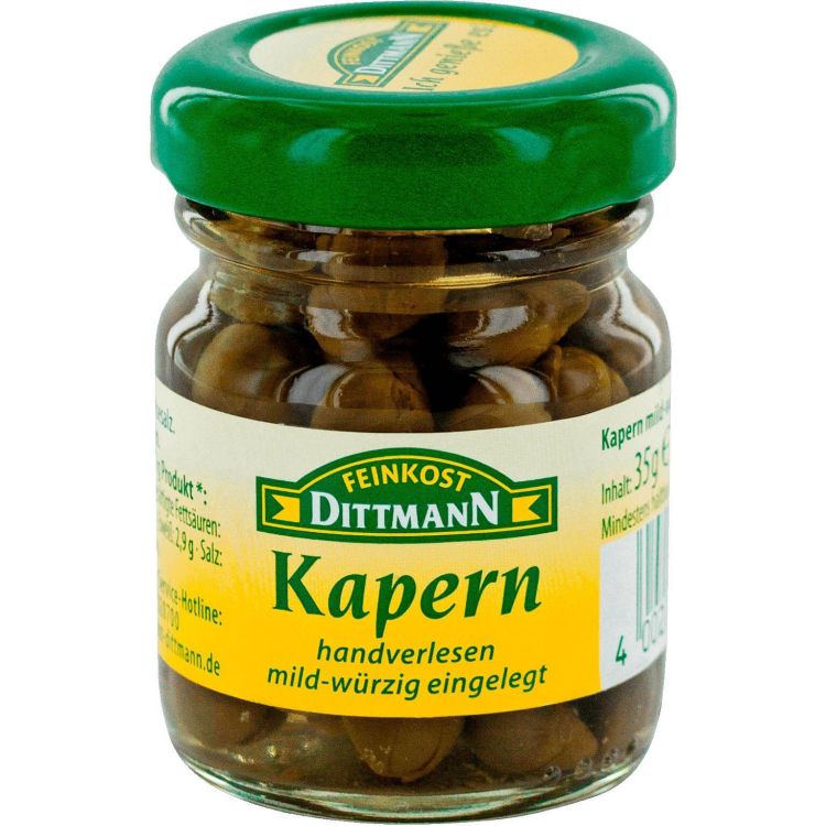 Feinkost Dittmann предлага каперси с мек и пикантен вкус, подходящи за овкусяване на различни ястия като салати, сосове и предястия.