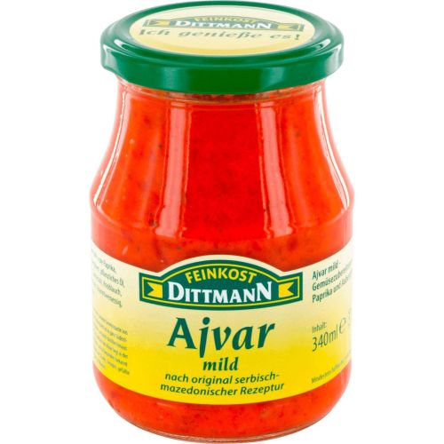 Feinkost Dittmann предлага мек айвар – зеленчукова паста, приготвена от червени чушки и патладжани, подходяща за намазване на хляб, като гарнитура или добавка към различни ястия.