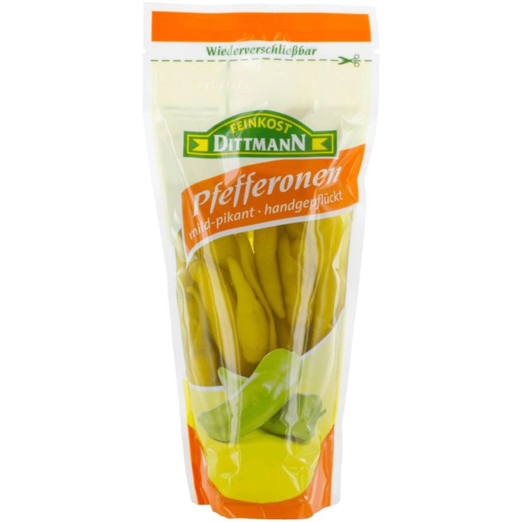 Feinkost Dittmann предлага леко пикантни пеперони, подходящи за директна консумация, добавка към салати, пици или като гарнитура към различни ястия.