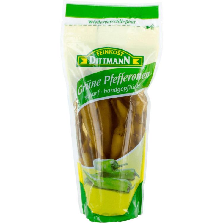 Feinkost Dittmann предлага люти зелени пиперки, които са идеални за добавяне на пикантен вкус към различни ястия или като част от антипасти плато.