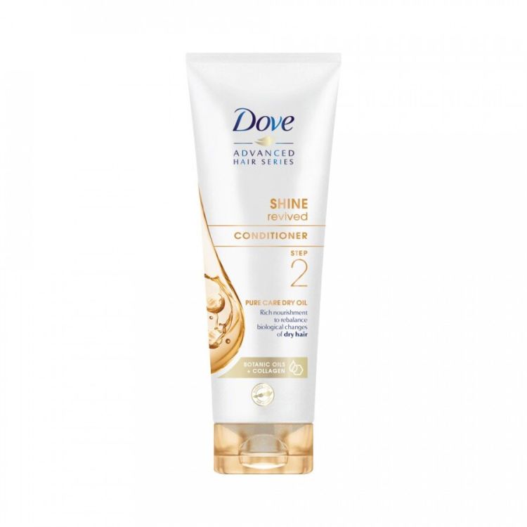 Балсамът на Dove осигурява нежна грижа за суха коса. Благодарение на своята уникална формула, богата на натурални масла, той интензивно подхранва косата, прави я мека и гладка. Технологията Dry Oil се абсорбира бързо при допир с косъма и прави косата мека като коприна, без да я утежнява. Благодарение на нея, косъма получава изключителен блясък. Всеки кичур се изглажда и започва да сияе. След употреба, косата е жива и лесна за разресване.
