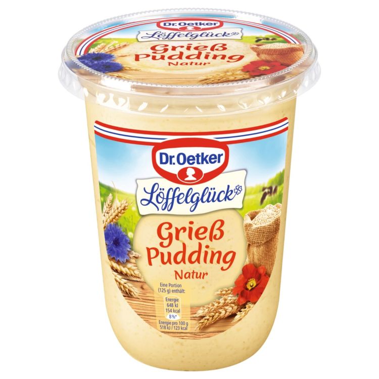 Dr. Oetker пудинг с грис и сметана е популярна десертна класика, приготвена от пълномаслено мляко и фин пшеничен грис. Неговата кремообразна консистенция и страхотен вкус го правят любим десерт, който може перфектно да се комбинира с плодове и сосове.