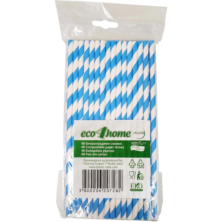 eco4home хартиени сламки сини, ф6 мм / 20 см (48 бр.)
