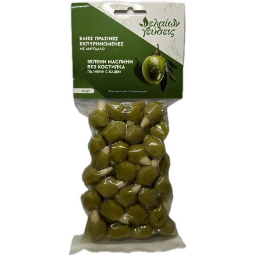 Elaíon Géfseis зелени маслини без костилка пълнени с бадем (250 г)