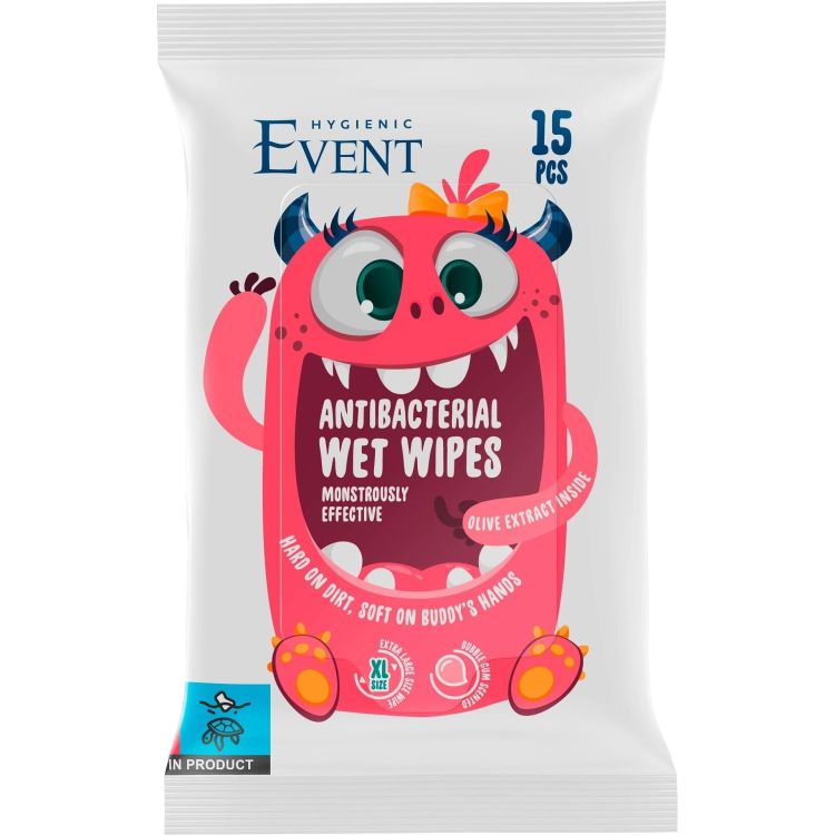 Event антибактериални кърпи за деца с екстракт о маслина, розови (15 бр.)