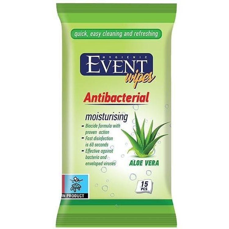 Event антибактериални влажни кърпи с алое вера (15 бр.)