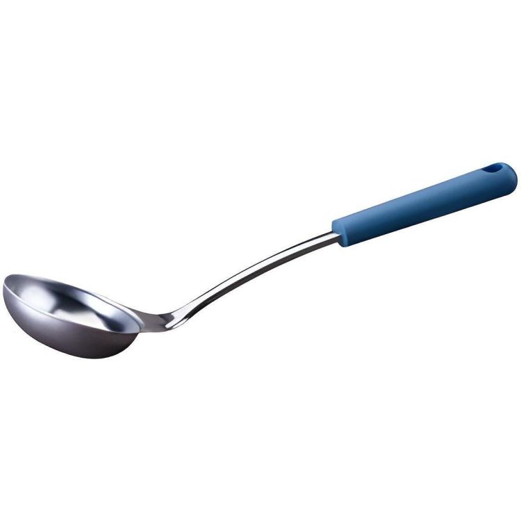 Черпак, Essential, функционална част: неръждаема стомана - 18/0 / AISI 430 (сребрист), дръжка: PP (тъмносин), 322 x 93 x 55 мм, 92 г, край на дръжката с практичен отвор за закачане, перфектен за сервиране на супи, яхнии и др., подходящ за съдомиялна машина