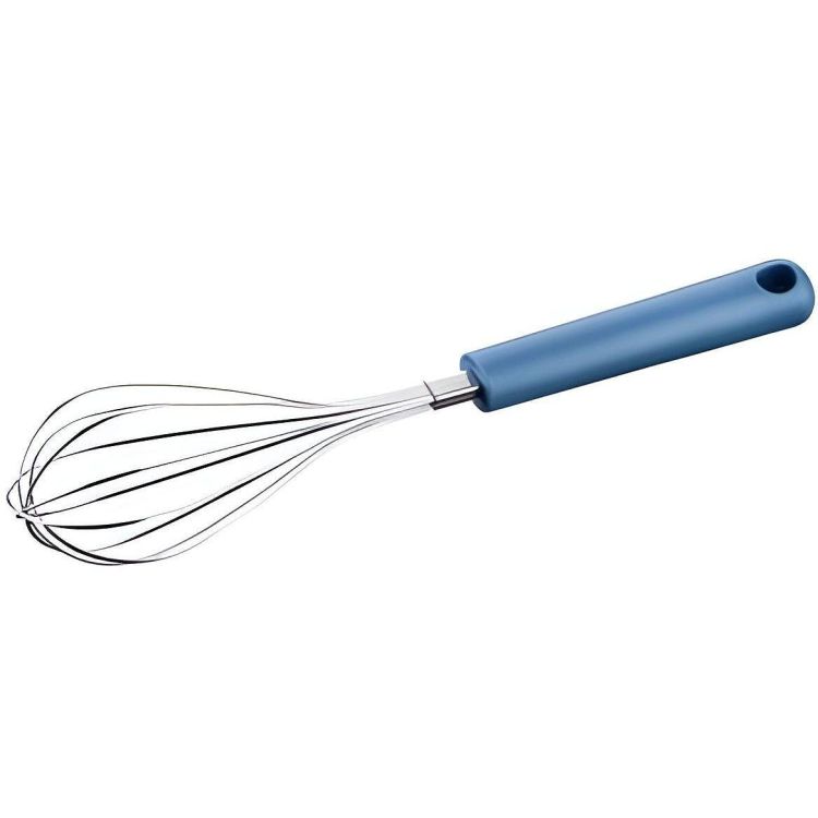 Разбивачка за яйца, Essential, жица: неръждаема стомана - 18/0 / AISI 430 (сребрист), дръжка: PP (тъмносин), свързваща част: неръждаема стомана - 18/0 / AISI 430 (сребрист), 275 x 56 x 55 мм, 48 г, край на дръжката с практичен отвор за закачане, за разбъркване, смесване и разбиване на сметана, сосове и др., подходяща за съдомиялна машина